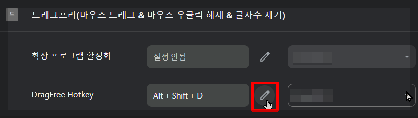 ▼단축키지정 진입 후 수정 버튼으로 본인이 쓰기 편하면서 다른 단축키와 충돌이 없을만한걸로 지정하면 됨.