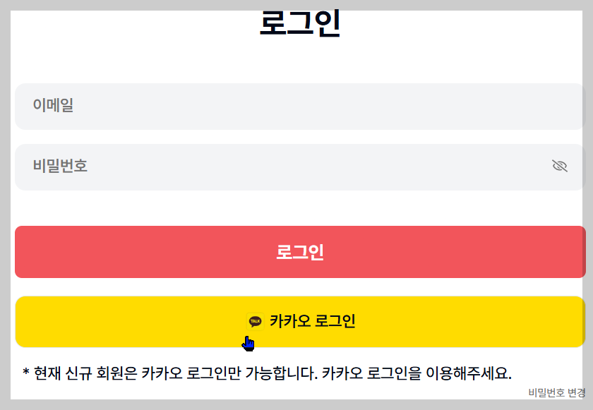 ▼ 프리티는 로그인 없이 되었는데 스마텔은 로그인 하라고 뜸. 현재 신규회원은 카카오톡 계정으로밖에 로그인이 안되니 카카오톡 계정으로 로그인 누르시고, 편한 인증 방식(네이버, 카카오, 패스 등)으로 인증을 진행하세요.