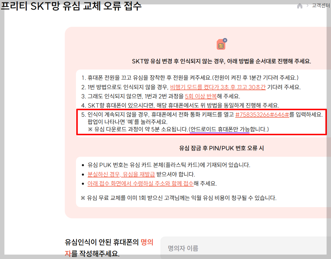 '프리티 SKT망 유심 교체 오류 접수' 페이지 바로가기