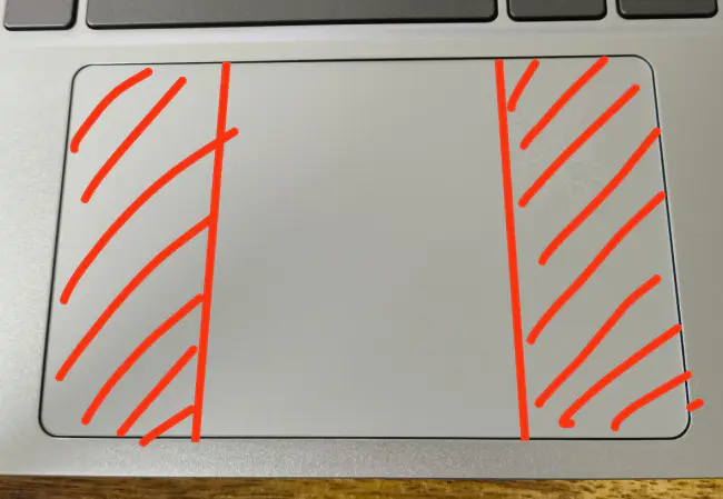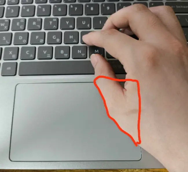 ↓ 아래 사진처럼 손바닥쪽이 터치패드에 닿을 위험이 있는 구역이 생기니까요.